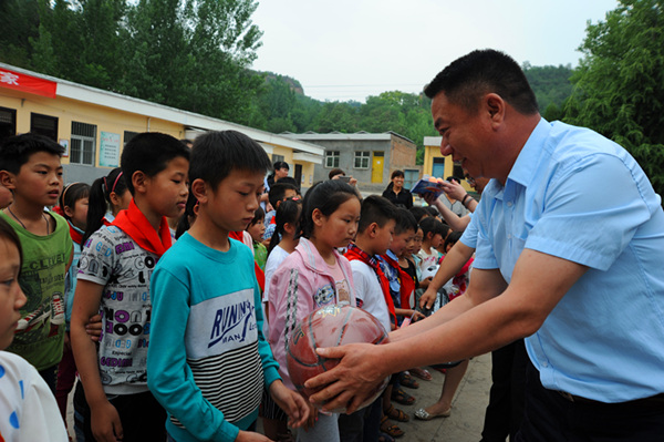 5月31日上午,開(kāi)元集團(tuán)(香港)控股有限公司14位員工驅(qū)車(chē)近100公里,來(lái)到洛寧縣郭村小學(xué),參加由洛陽(yáng)市委統(tǒng)戰(zhàn)部發(fā)起的愛(ài)心助學(xué)活動(dòng),為山區(qū)孩子們送去了學(xué)習(xí)用品、體育用品等愛(ài)心助學(xué)物資。市委統(tǒng)戰(zhàn)常務(wù)副部長(zhǎng)張麗君、市委統(tǒng)戰(zhàn)部紀(jì)檢員張玉紅、開(kāi)元集團(tuán)副總經(jīng)理?xiàng)畲荷?、總?jīng)理助理叢萬(wàn)通等參加了捐贈(zèng)儀式。
